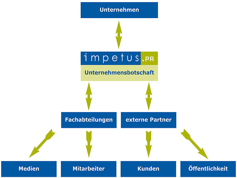 Kontinuierliche Unternehmenskommunikation ist extrem vielschichtig. Nur so können Sie Ihre Kompetenz am Markt zeigen, sich vom Wettbewerb dauerhaft differenzieren, Vertrauen in Ihr Unternehmen und Ihre Produkte wecken und Visionen vermitteln. Wir entwickeln in systematischem Abgleich mit Ihren Unternehmenszielen ein übergreifendes Kommunikationskonzept und setzen dieses gemeinsam mit Ihren Fachabteilungen oder externen Dienstleistern kanalspezifisch und zielgruppengenau um.